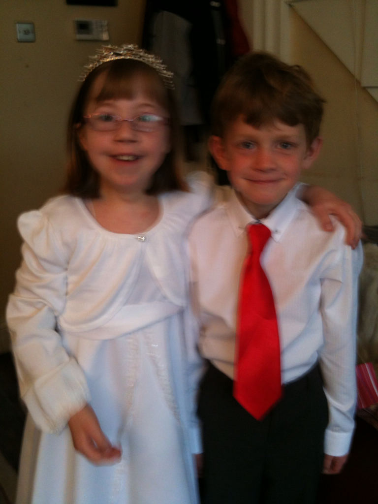 This was Sunday, the 10th of June. Fortunately Anna stayed clean and dry on the 17th in her first Holy Communion whites. The same cannot be said for Thomas, however, who took the opportunity of having friends round as a sign that it was time to play football. So much for that new, brilliant-white shirt.
